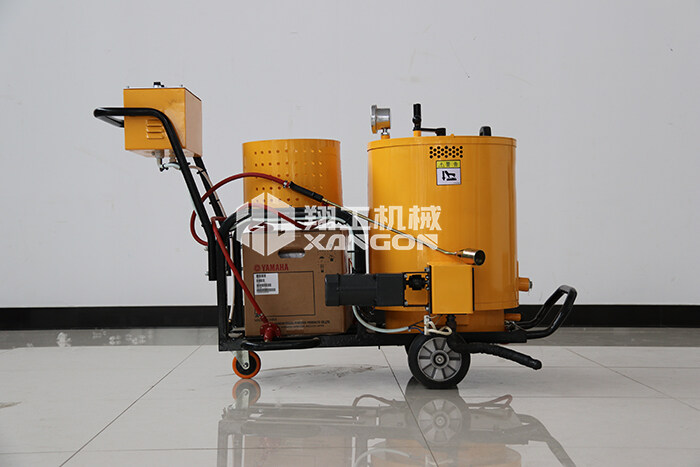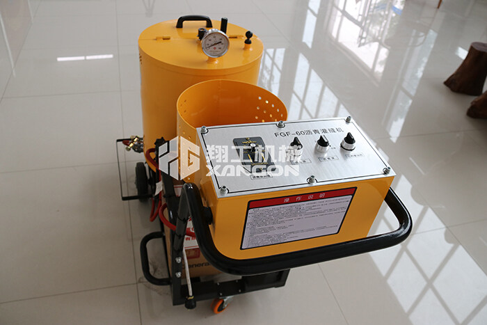 翔工60L手扶瀝青灌縫機(jī)采用液化氣加熱系統(tǒng),導(dǎo)熱油循環(huán),使瀝青或灌縫膠快速融化,通過瀝青泵的壓力由出料口出料而達(dá)到裂縫處理的效果。通過壓力注射式灌縫,使材料和縫壁緊密結(jié)合,轉(zhuǎn)向靈活的萬向輪追蹤裂縫,使灌縫效果美觀。由于灌縫材料使用瀝青或灌縫膠,在溫度較低時(shí)容易凝固,灌縫機(jī)配有發(fā)電機(jī)組提供整機(jī)動(dòng)力,灌縫機(jī)在出料管部位采用恒溫控制系統(tǒng),避免材料燒焦老化,保證出料的順暢。