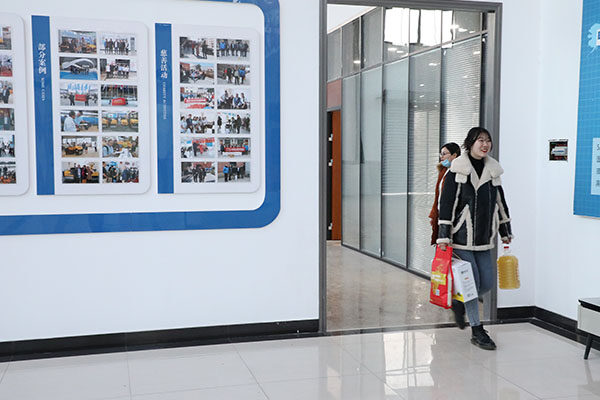 發(fā)放現(xiàn)場氣氛熱烈,特別是發(fā)放人員配合默契,維護秩序、搬運、核對,各司其責,將承載著公司關(guān)懷的福利品傳遞到員工手中,發(fā)放現(xiàn)場洋溢著一片溫馨和諧的氛圍。這些東西捧在員工手里,暖在心里。