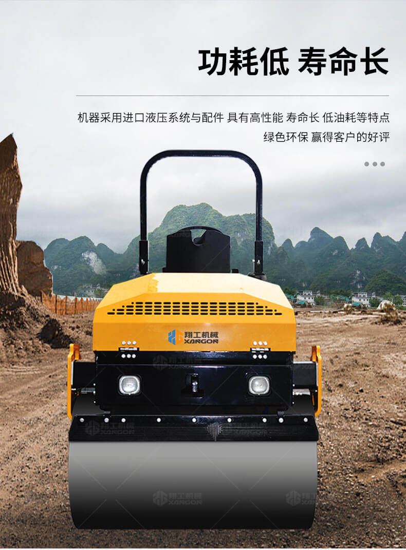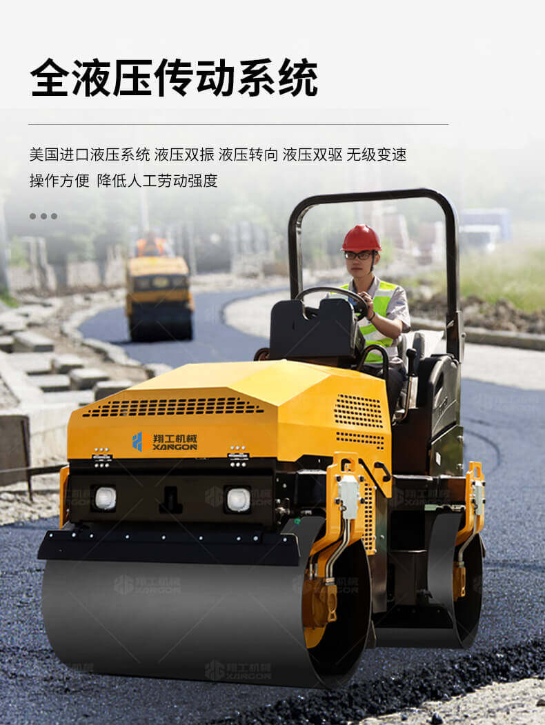 采用進口液壓系統(tǒng),雙驅雙振,前后輪可單獨調節(jié)振動,亦可同時振動。液壓轉向,液壓驅動,液壓行走,液壓振動。進口英國鉑金斯柴油機三缸水冷四沖程,動力強勁,性能穩(wěn)定。超快速度一小時可達12千米,無極變速。壓土,碎石,壓瀝青,壓回填土效果超乎想象。
