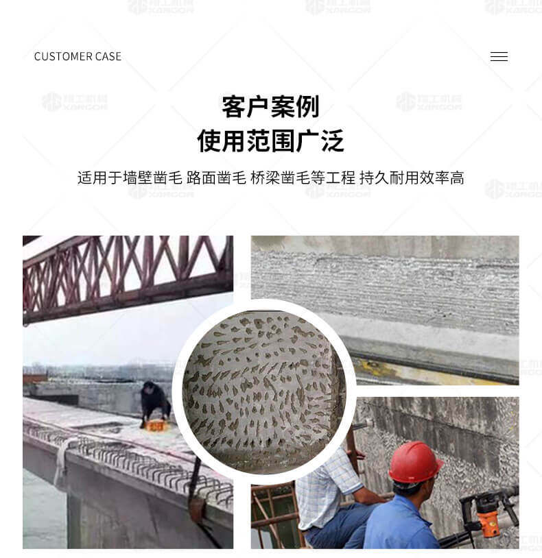 手持式鑿毛機(jī)主要用于混凝土剔鑿,水泥表面的打點(diǎn)、粗糙、清理浮漿;兩次鋪裝前清理舊的混凝土。 手持式鑿毛機(jī)是利用活塞打擊的方法在混凝土表面鑿毛,用來(lái)使新舊混凝土粘結(jié)