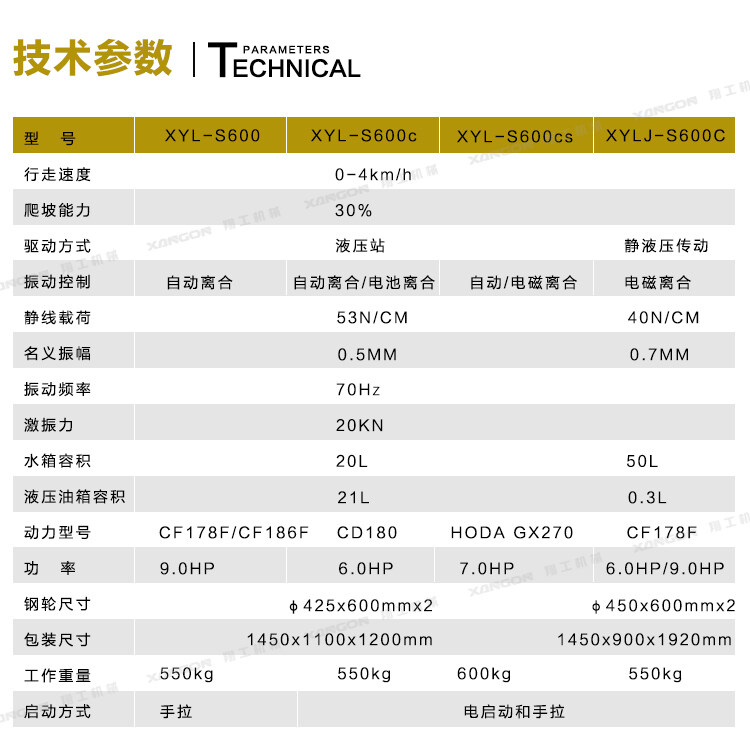 ·柴油動力采用電啟動,輕便靈活換向機構(gòu);雙驅(qū)雙振,保證了整體的壓實和爬坡能力;