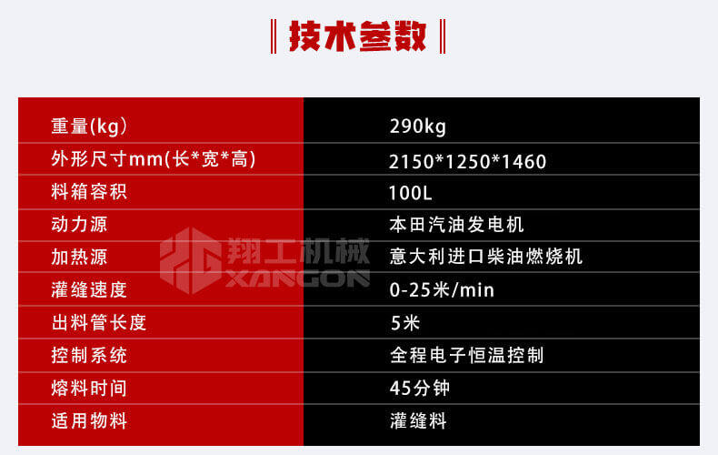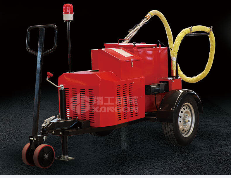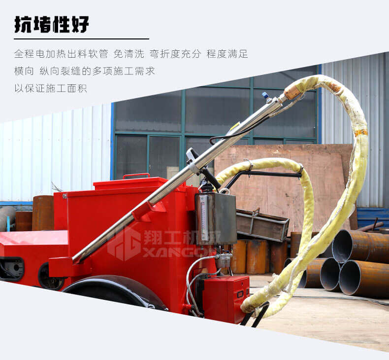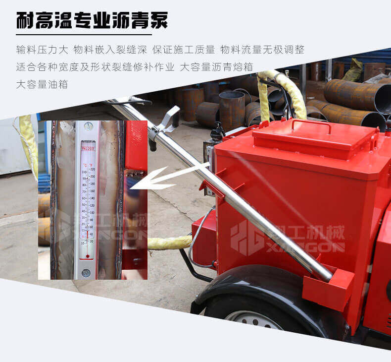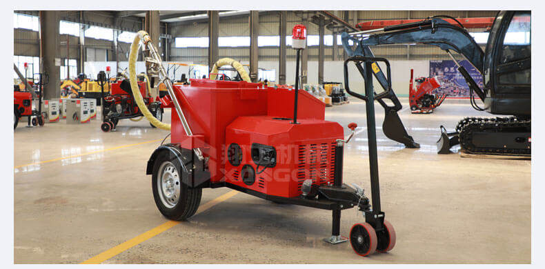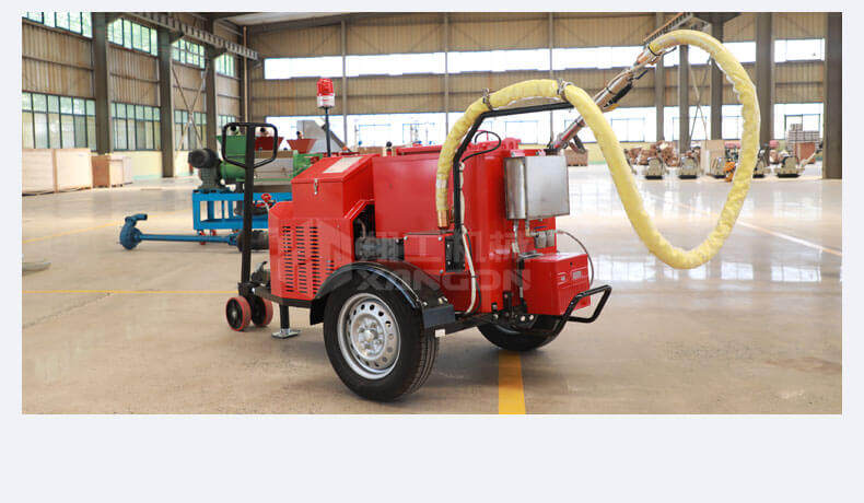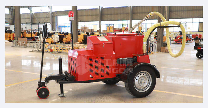 灌縫機(jī)主要有手推式和自行式手持灌縫管操作,采用進(jìn)口柴油燃燒器加熱。在工作時首先在料箱內(nèi)加入瀝青或灌縫膠,啟動發(fā)電機(jī)供電,依次間斷打開導(dǎo)熱油泵開關(guān),燃燒器開關(guān),出料管加熱開關(guān);