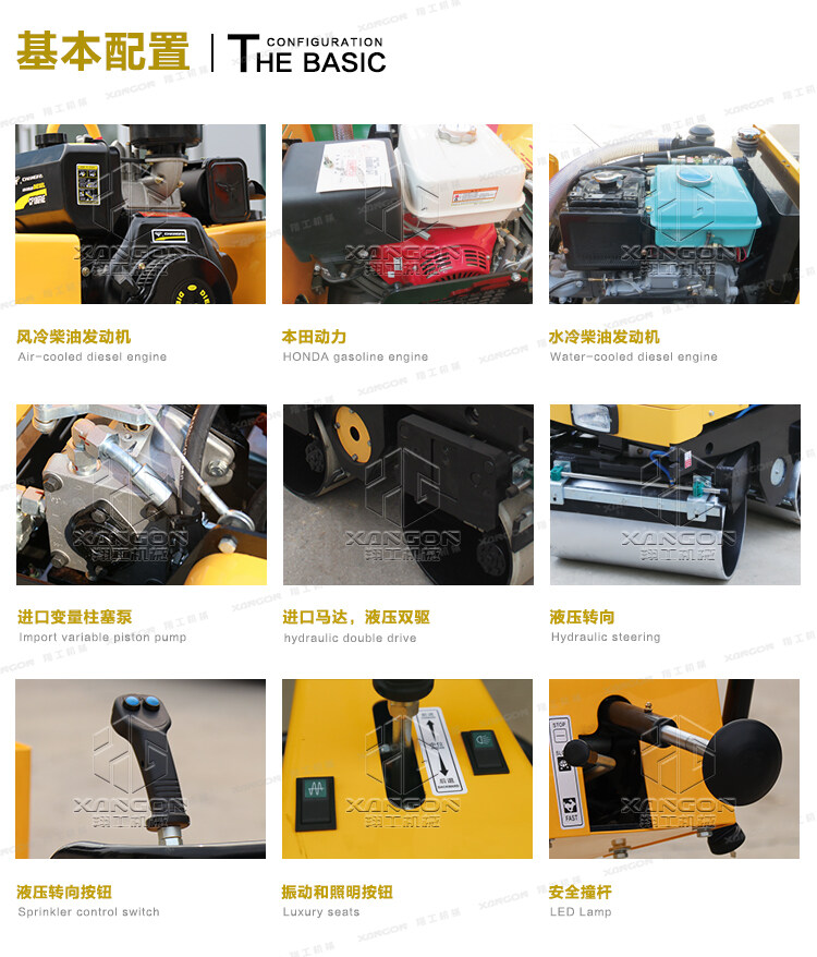 雙驅(qū)雙振,保證了整體的壓實(shí)和爬坡能力;表面噴塑,漂亮美觀,防銹耐蝕;
