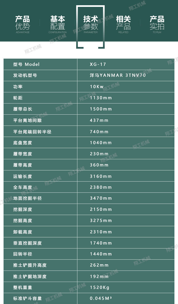 XG1.7t微型挖掘機(jī)詳細(xì)介紹: