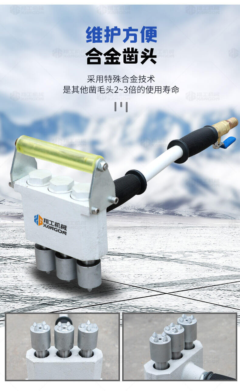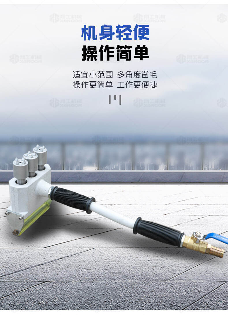 鑿毛機機型小,機身輕便,特別適宜小范圍、多角度鑿毛。采用特殊合金技術,是其它鑿毛頭2-3倍的使用壽命。