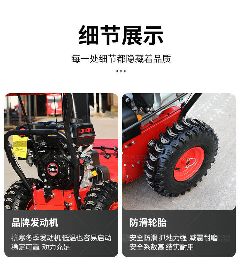 1、防腐 安全功能開關(guān),操作簡單,當(dāng)手動開關(guān)松開后,掃雪裝置即停止工作,可以單手操作 2、極佳的拋雪距離,可達(dá)10-15米 3、揚(yáng)雪方向可以單獨(dú)設(shè)定 4、掃雪裝置使用壽命長