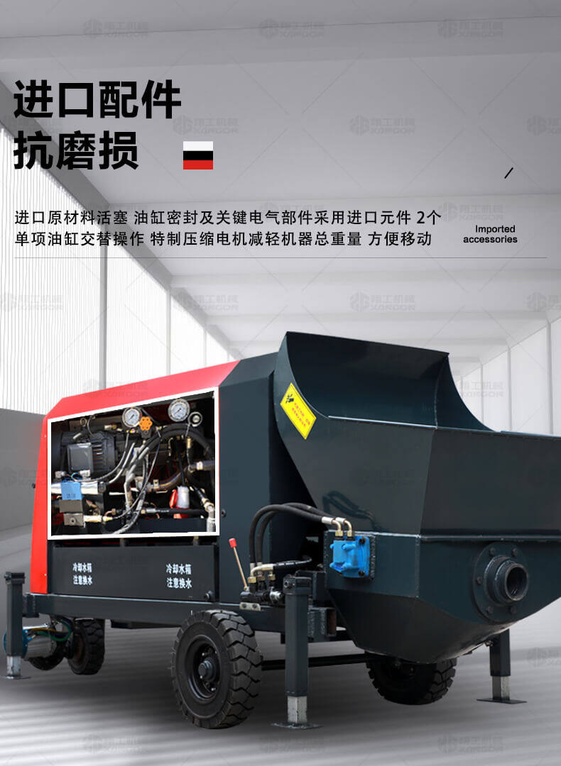 這款7.5KW型澆筑泵帶有自動(dòng)攪拌功能,性能可靠,設(shè)備各個(gè)結(jié)構(gòu)制造科學(xué),電機(jī)功率大、性能穩(wěn)定、施工效率高等優(yōu)勢,使用電動(dòng)澆筑泵大大提高了施工效率,降低勞動(dòng)強(qiáng)度,節(jié)約人工,被廣泛應(yīng)用。是工程施工的好幫手。