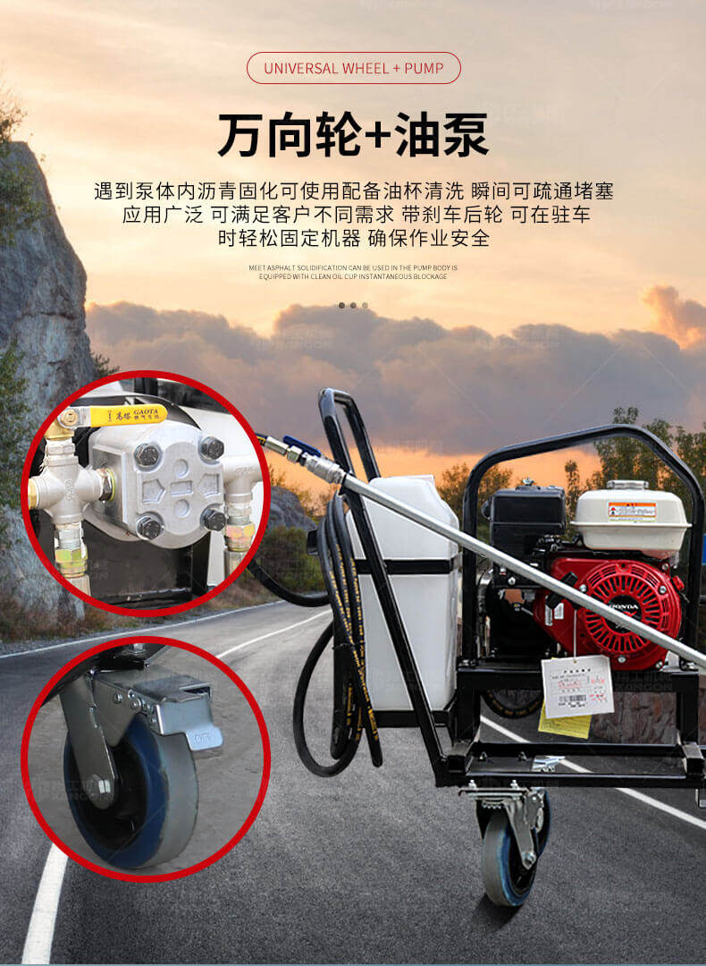 小型乳化瀝青撒布機(jī)用于修補(bǔ)瀝青道路上的坑槽,裂縫或?qū)磳⒗匣穆访孢M(jìn)行表層噴層修復(fù)翻新,由于在養(yǎng)護(hù)瀝青道路時(shí)經(jīng)常需要對(duì)路面均勻噴灑乳化瀝青或防水材料。