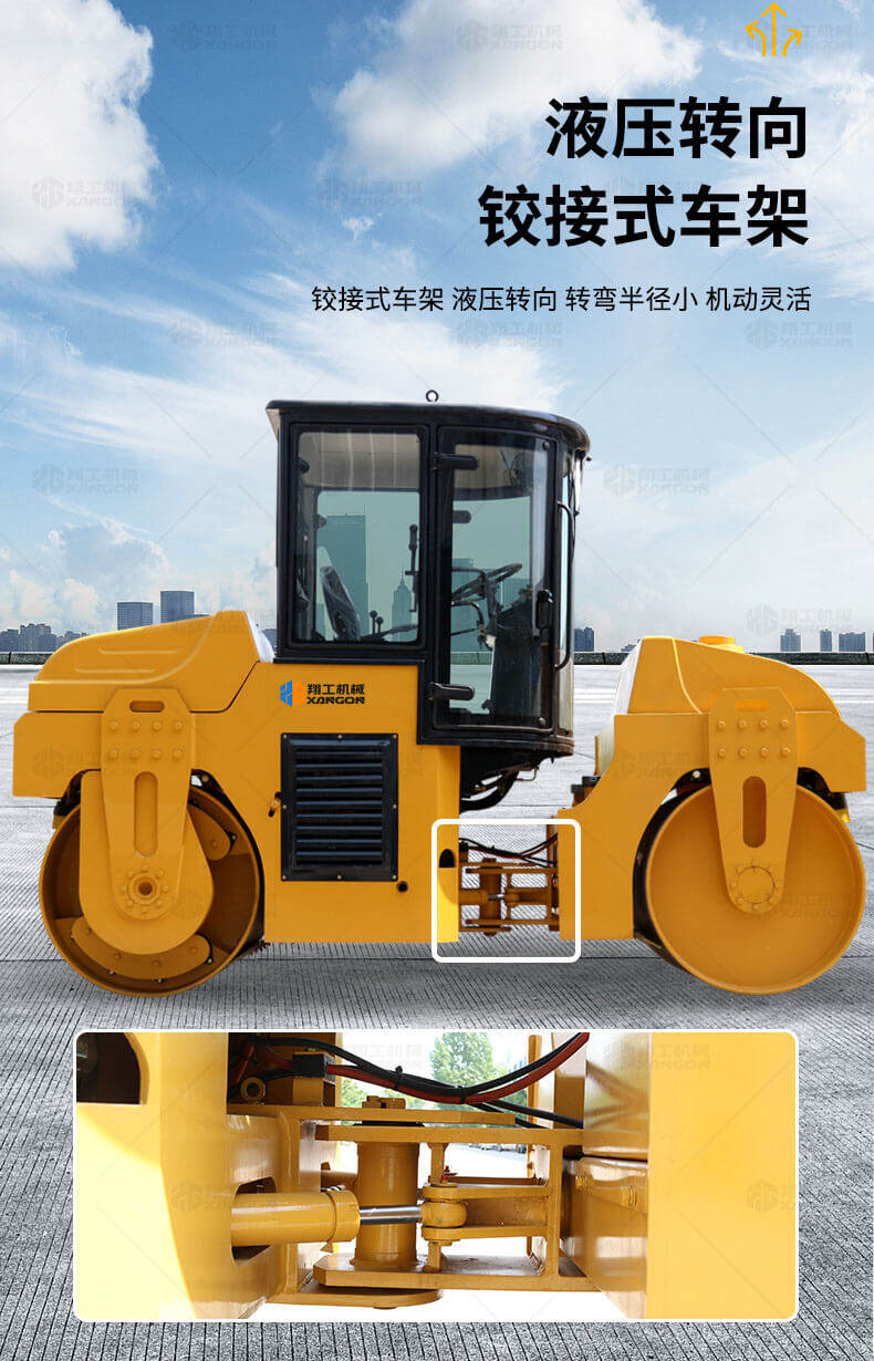 XGC6型振動壓路機(jī)(SAC6CD型振蕩壓路機(jī))是一種串聯(lián)式的雙鋼輪型振動(蕩)壓實機(jī)械;該機(jī)主要由鉸接式車架、振動(蕩)輪、轉(zhuǎn)向輪,動力裝置、液壓振動、液壓轉(zhuǎn)向、操縱機(jī)構(gòu)、電動灑水和電氣系統(tǒng)等主要部分組成。