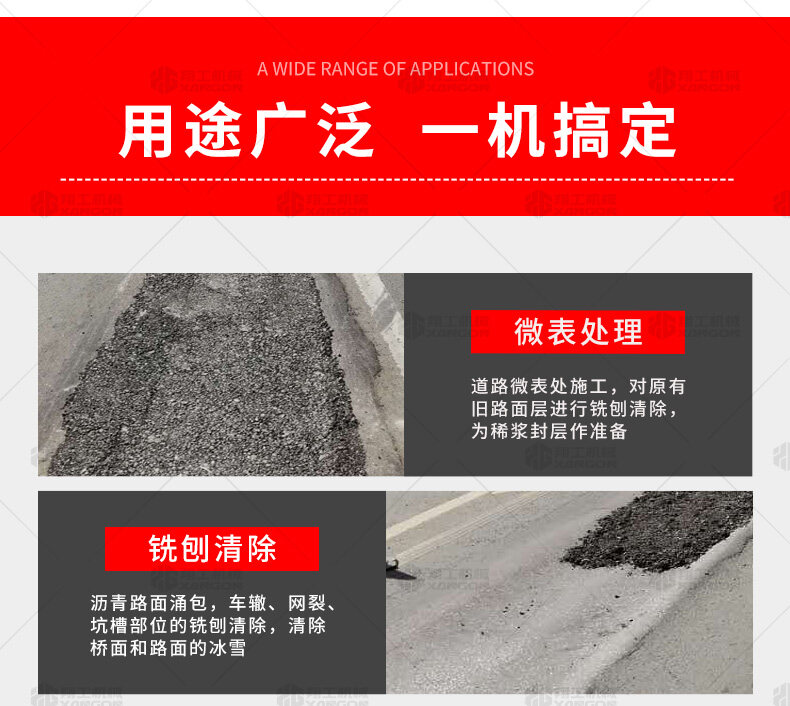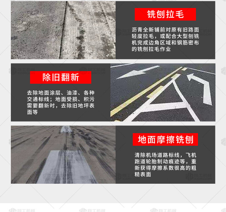 路面銑刨機(jī)是瀝青路面養(yǎng)護(hù)施工機(jī)械的主要機(jī)種之一,瀝青混凝土路面養(yǎng)護(hù)施工的主要設(shè)備之一,主要用于公路、城鎮(zhèn)道路、機(jī)場(chǎng)、貨場(chǎng)等瀝青混凝土面層的開挖翻新,也可以用于清除路面擁包、油浪、網(wǎng)紋、車轍等缺陷,還可用來開挖路面坑槽及溝槽,以及水泥路面的拉毛及面層錯(cuò)臺(tái)的銑平。