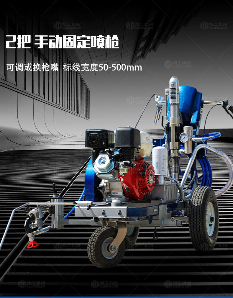 手推常溫標線機是常溫標線施工的專用設備,噴出的線型清晰、流暢、飽滿、均勻......