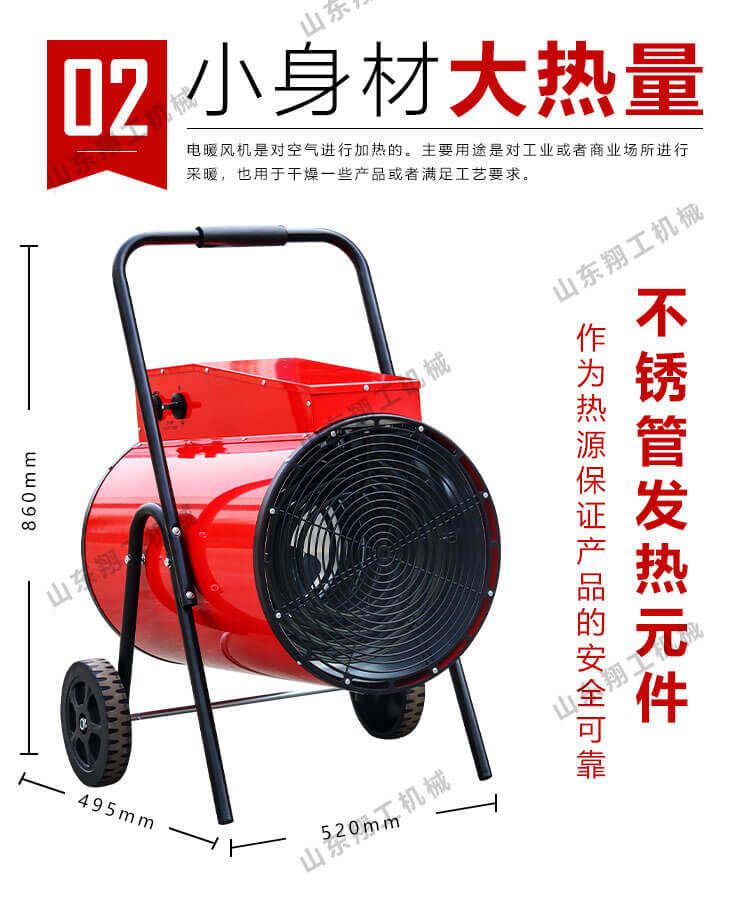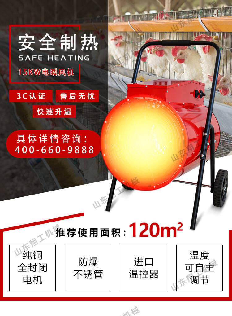 15KW電暖風(fēng)機優(yōu)點: 1、純銅全封閉電機 2、防爆不銹管(不銹管發(fā)熱元件作熱源保證產(chǎn)品的可靠) 3、取暖溫度可自動調(diào)節(jié)(調(diào)節(jié)功率) 4、進口溫控器 5、外殼絕緣,防水