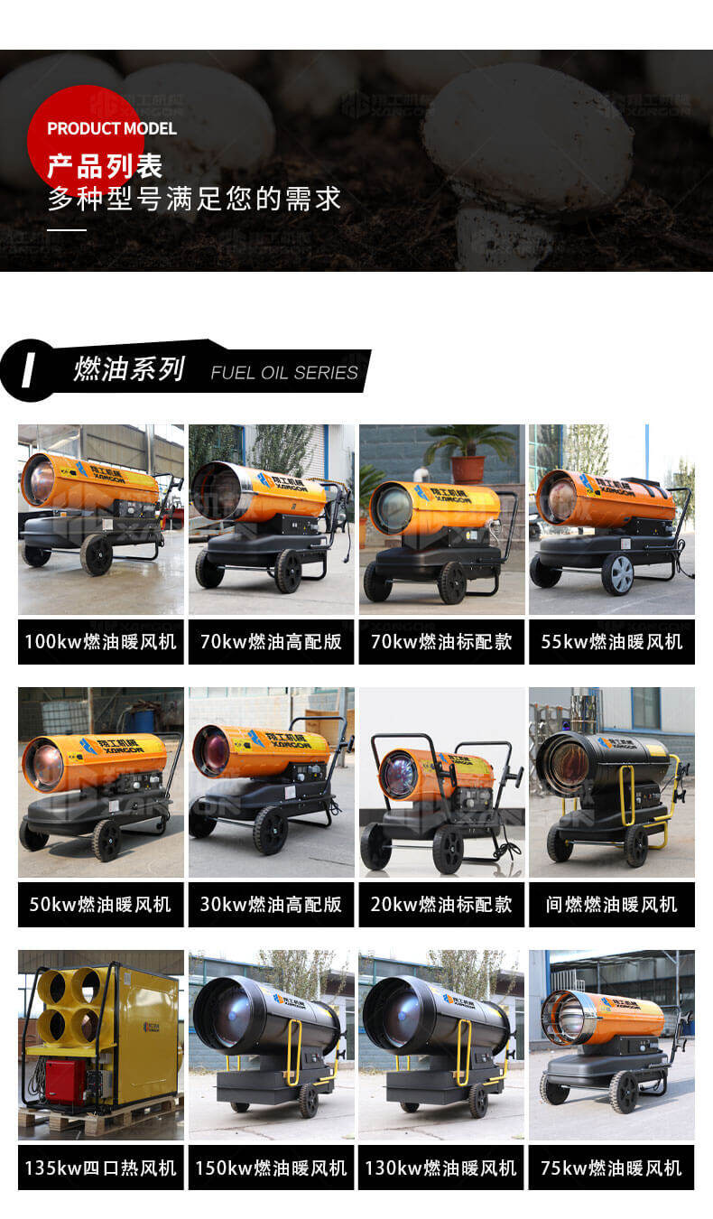 35KW燃油暖風(fēng)機(jī)適合在工廠車間,物資倉(cāng)庫(kù),防潮烘干,局部采暖 建筑工地,道路橋梁,水泥養(yǎng)護(hù),野外采暖 石油鉆井,煤炭礦區(qū),除冰防凍,設(shè)備保溫 鐵路機(jī)場(chǎng),游艇船舶,油漆干燥等等。