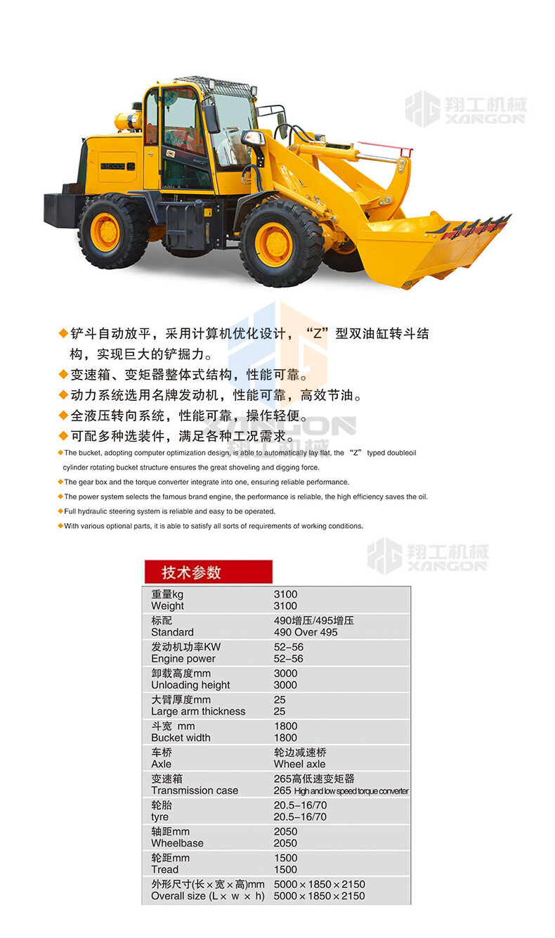 主要用于鏟裝土壤、砂石、石灰、煤炭等散狀物料,也可對(duì)礦石、硬土等作輕度鏟挖作業(yè)。換裝不同的輔助工作裝置還可進(jìn)行推土、起重和其他物料如木材的裝卸作業(yè)。在道路、特別是在高等級(jí)公路施工中,裝載機(jī)用于路基工程的填挖、瀝青混合料和水泥混凝土料場(chǎng)的集料與裝料等作業(yè)。