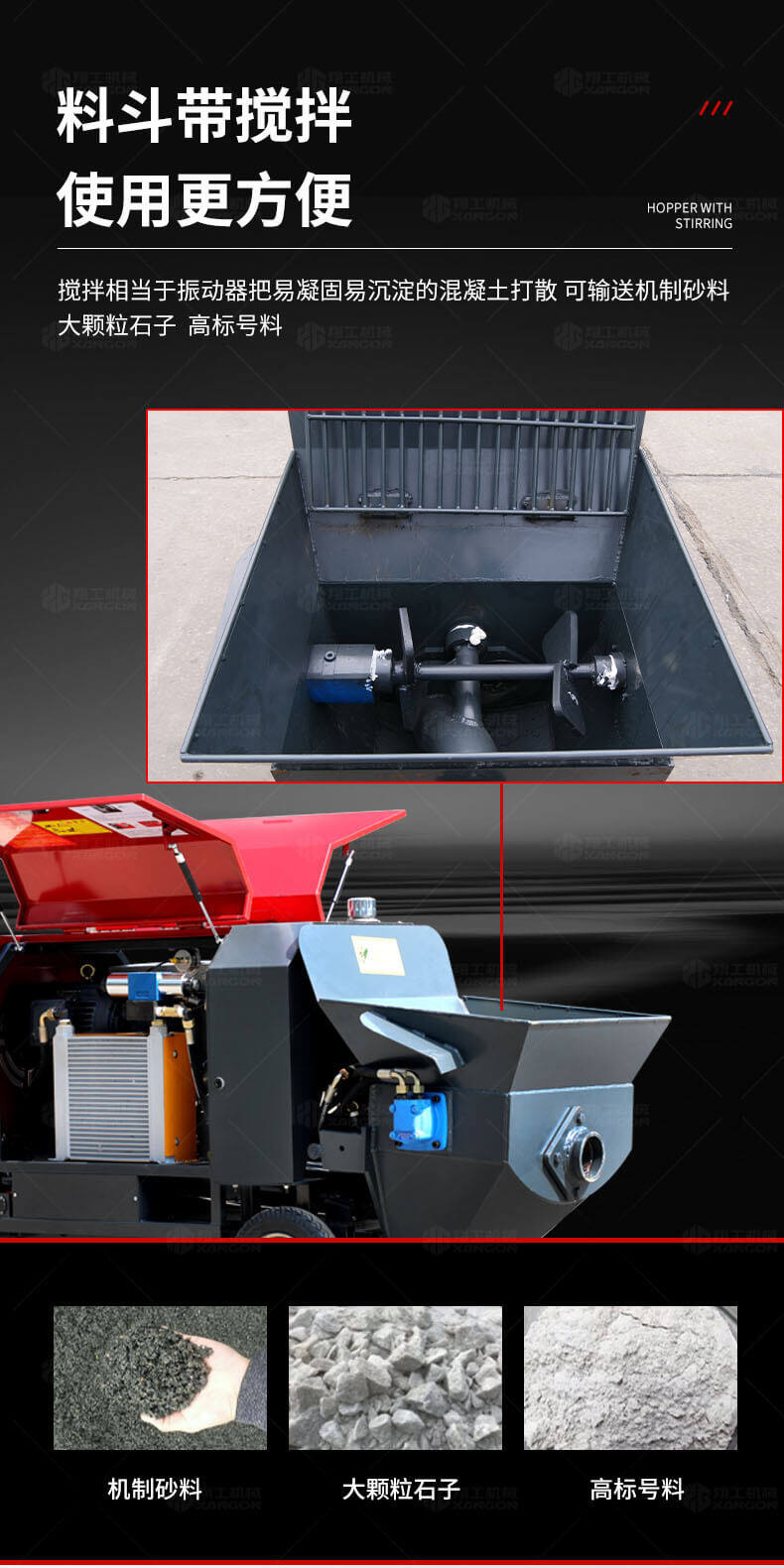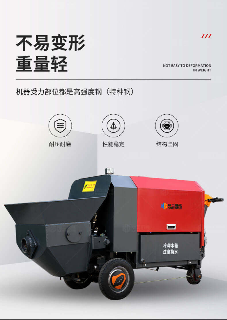 這款7.5KW型澆筑泵帶有自動攪拌功能,性能可靠,設備各個結(jié)構制造科學,電機功率大、性能穩(wěn)定、施工效率高等優(yōu)勢,使用電動澆筑泵大大提高了施工效率,降低勞動強度,節(jié)約人工,被廣泛應用。是工程施工的好幫手。