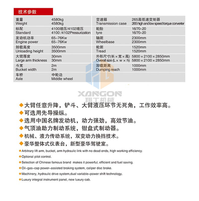 主要用于鏟裝土壤、砂石、石灰、煤炭等散狀物料,也可對(duì)礦石、硬土等作輕度鏟挖作業(yè)。換裝不同的輔助工作裝置還可進(jìn)行推土、起重和其他物料如木材的裝卸作業(yè)。在道路、特別是在高等級(jí)公路施工中,裝載機(jī)用于路基工程的填挖、瀝青混合料和水泥混凝土料場(chǎng)的集料與裝料等作業(yè)。