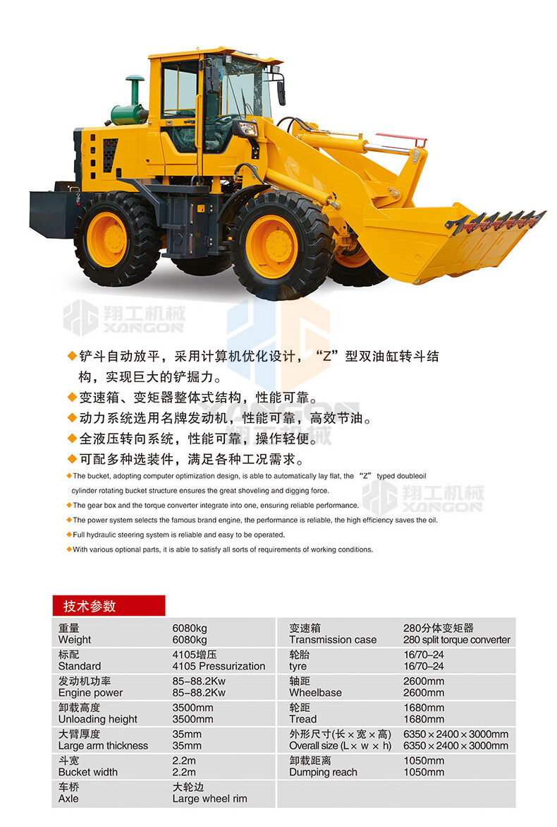 主要用于鏟裝土壤、砂石、石灰、煤炭等散狀物料,也可對(duì)礦石、硬土等作輕度鏟挖作業(yè)。換裝不同的輔助工作裝置還可進(jìn)行推土、起重和其他物料如木材的裝卸作業(yè)。在道路、特別是在高等級(jí)公路施工中,裝載機(jī)用于路基工程的填挖、瀝青混合料和水泥混凝土料場(chǎng)的集料與裝料等作業(yè)。