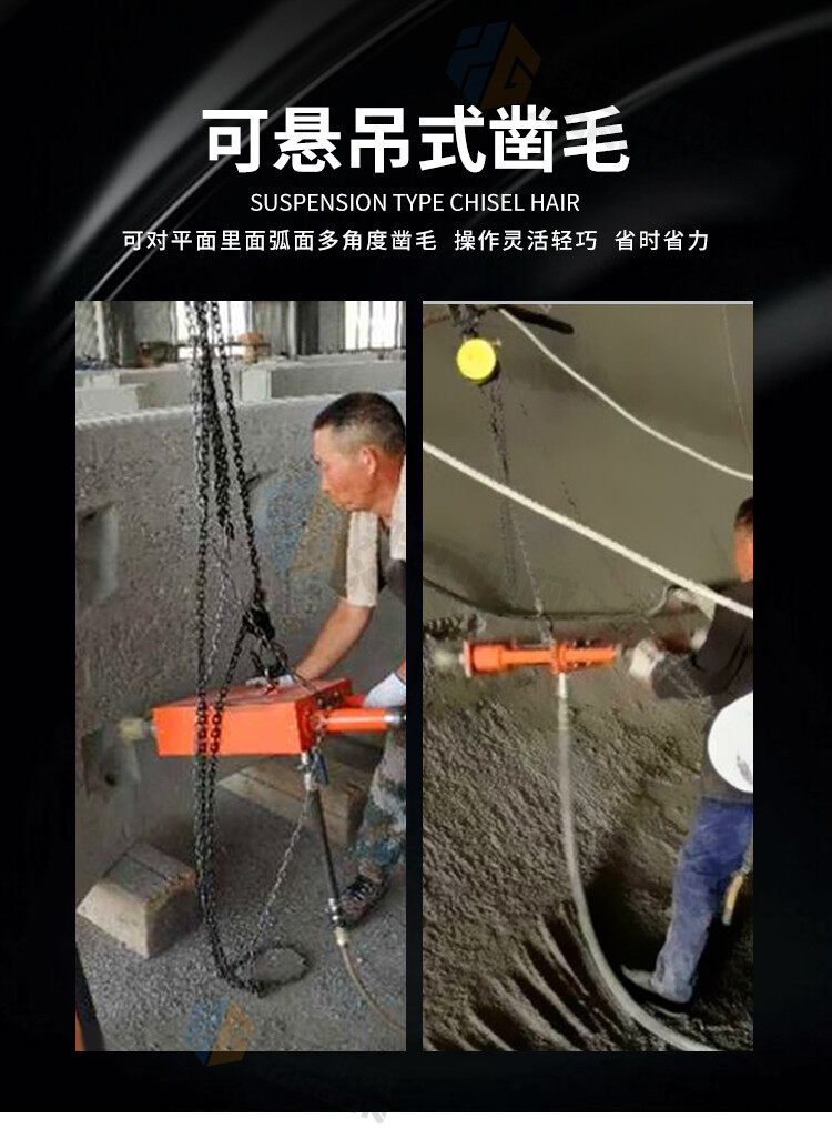 手持式懸掛鑿毛機(jī)機(jī)身有吊環(huán),鑿墻面的話吊起來使用,對平面、立面、弧形等多角度進(jìn)行鑿毛作業(yè),打擊力大、鑿深自如,應(yīng)用領(lǐng)域非常廣泛,又省力還方便。 主要適用于水庫、大壩滲漏,險(xiǎn)橋危橋、電廠、隧洞、高速公路、鐵路橋面以及箱梁混凝土等眾多領(lǐng)域 。主要是對混凝土表面進(jìn)行剔鑿,建筑物墻體、地面以及市政工程混凝土面層剔除、修補(bǔ)、翻新、加固等。