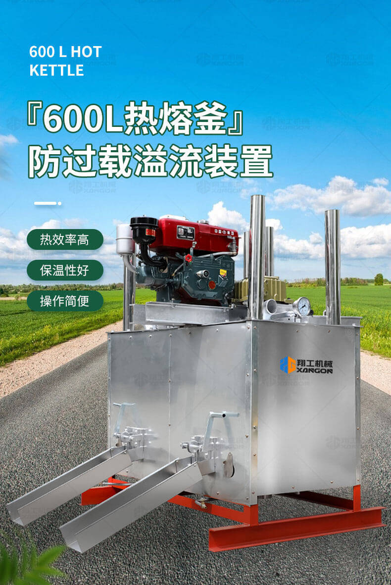 熱熔釜是一款熱熔標線施工的主要設(shè)備之一。標線施工時,先利用熱熔釜將粉末狀涂料加熱,攪拌,直到熱熔變成液態(tài)后,再將涂料放入劃線機內(nèi)進行劃線施工。