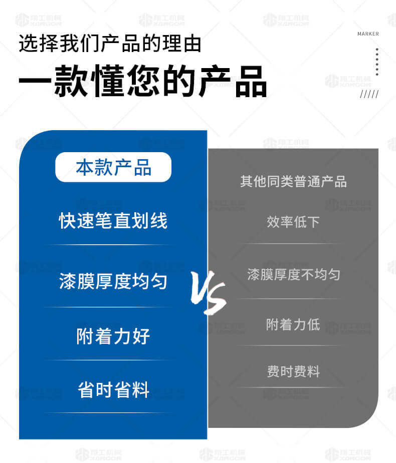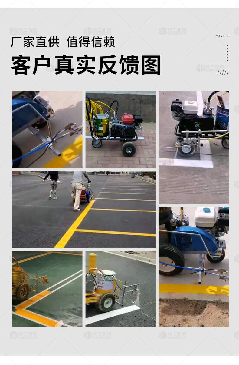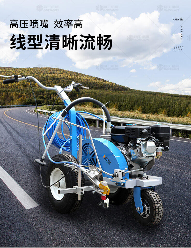 主要用于公路、市區(qū)、停車場、機(jī)場等涂劃直線、虛線、曲線、文字、箭頭等。具有劃線效果好、速度快、效率高、適用范圍廣、使用方便等優(yōu)點(diǎn)。