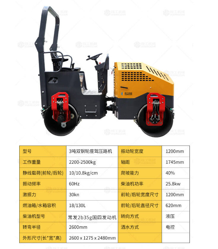 XYL-1100 3噸雙鋼輪座駕壓路機