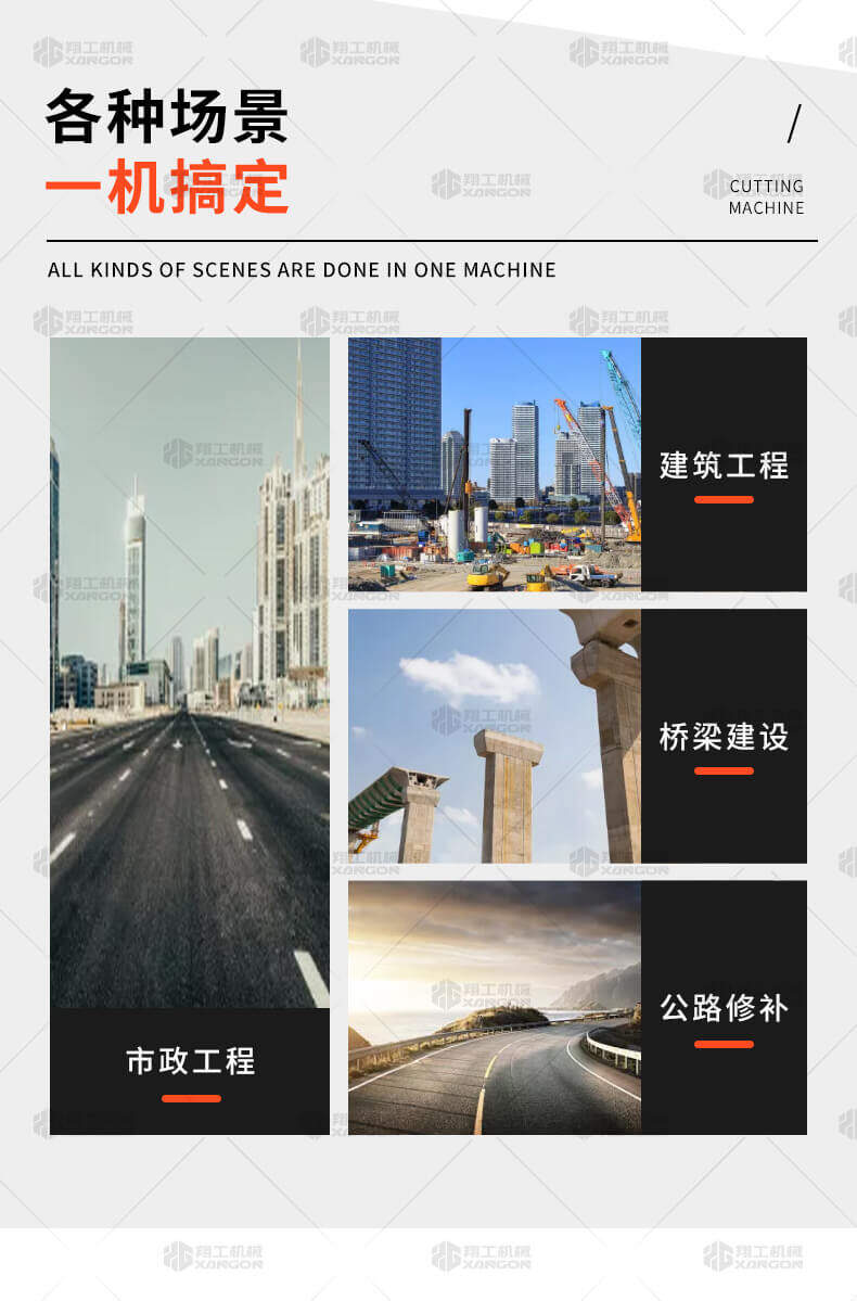 用于公路、市政、建筑、煤氣、通信部門(mén)修補(bǔ)公路或開(kāi)挖溝槽時(shí)進(jìn)行路面切割。相對(duì)于電動(dòng)或柴油動(dòng)力的路面切割機(jī),操作輕巧省力,運(yùn)輸方便,工作效率高。