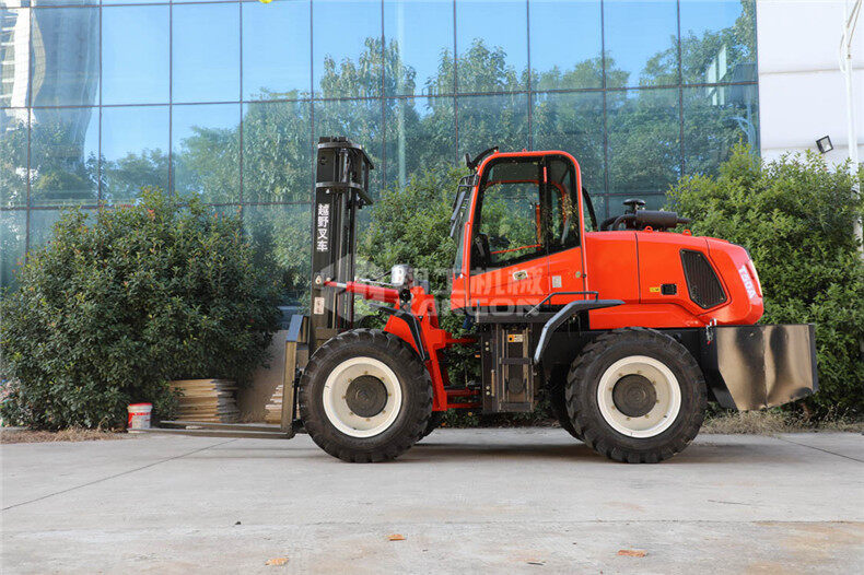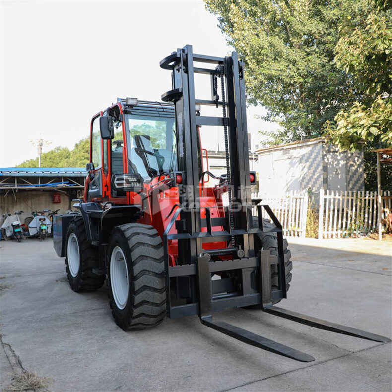 5.越野叉車發(fā)動機功率大,采用全輪驅動和越野輪胎。