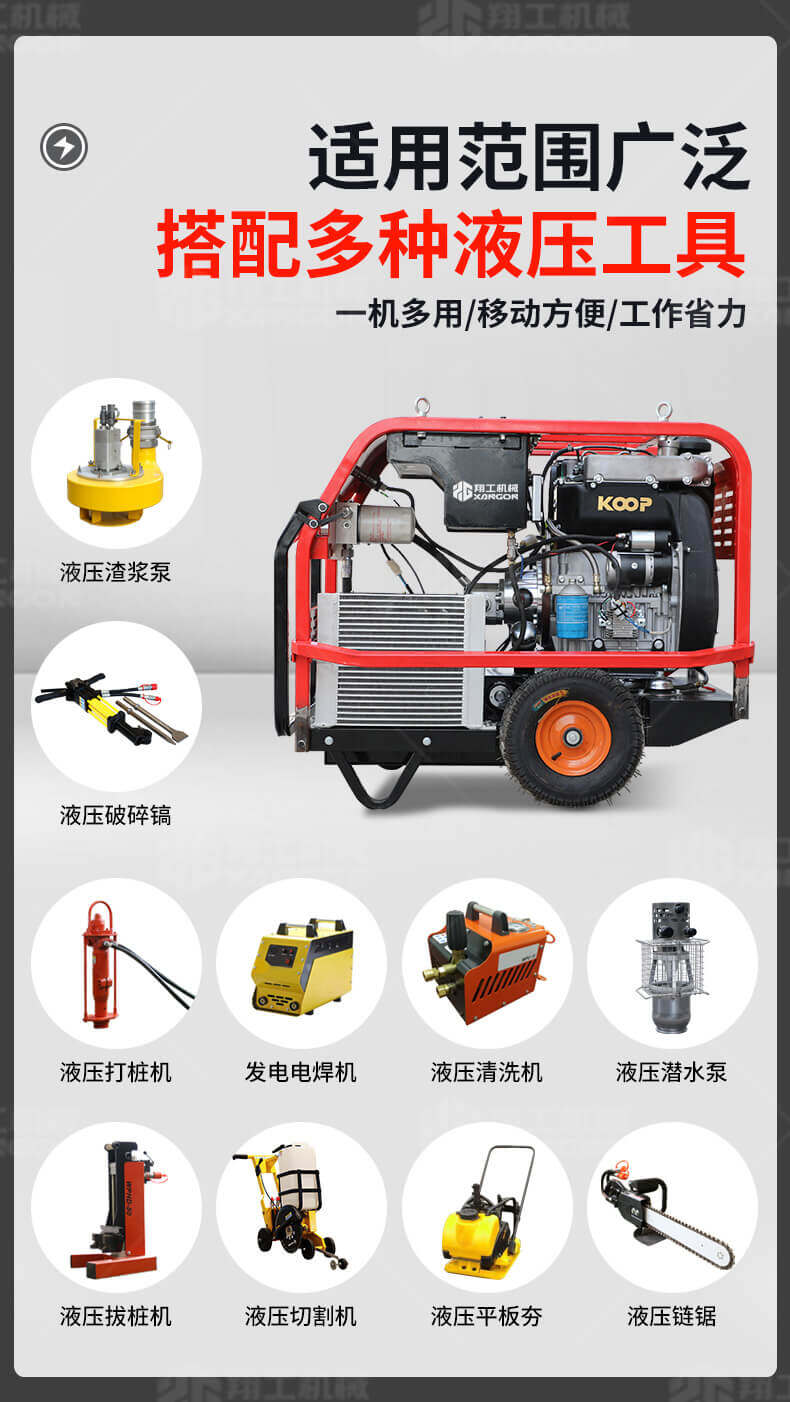 液壓動力站采用先進的技術(shù),可提供汽油或柴油風冷式內(nèi)燃發(fā)動機,燃燒效率高,重量輕,堅固耐用,使用壽命長,且不用擔心發(fā)動機過載。