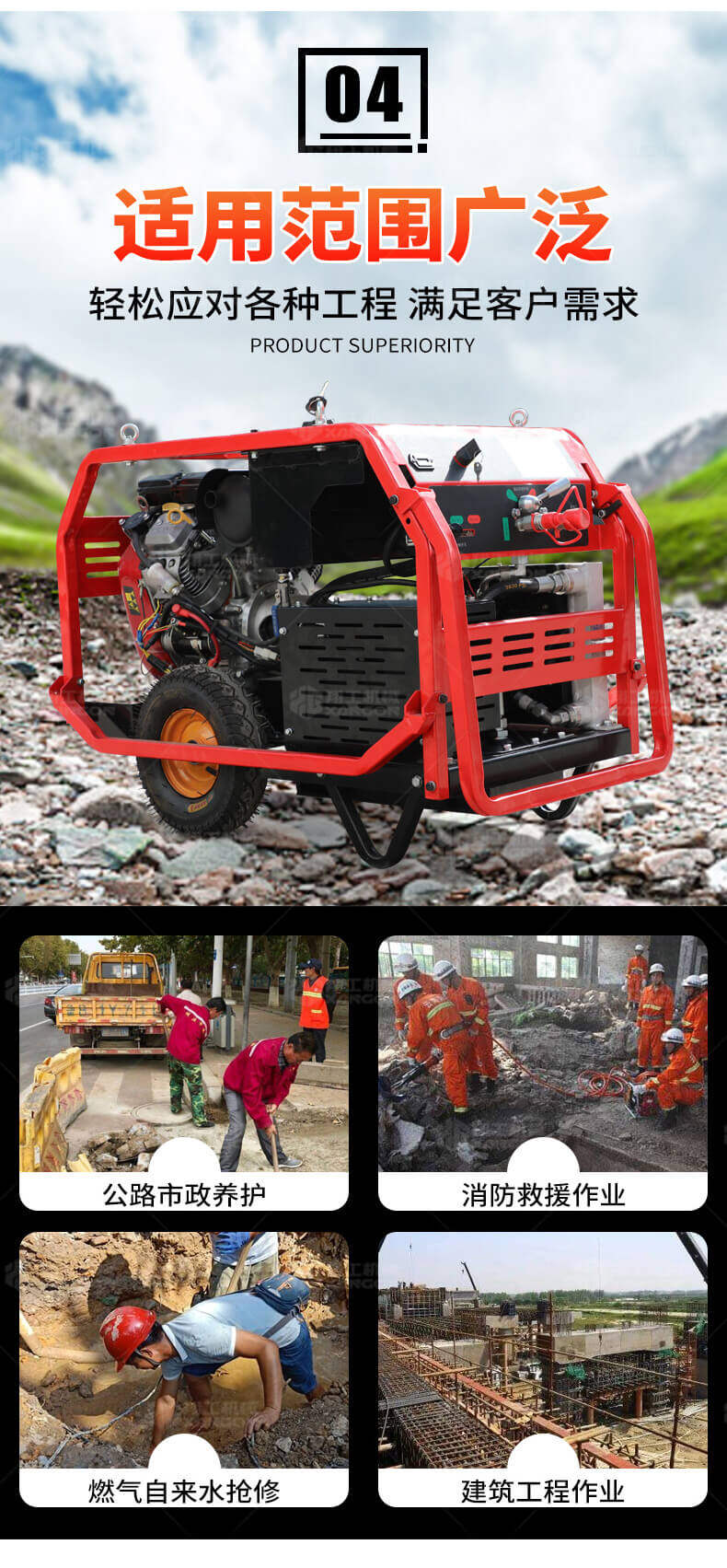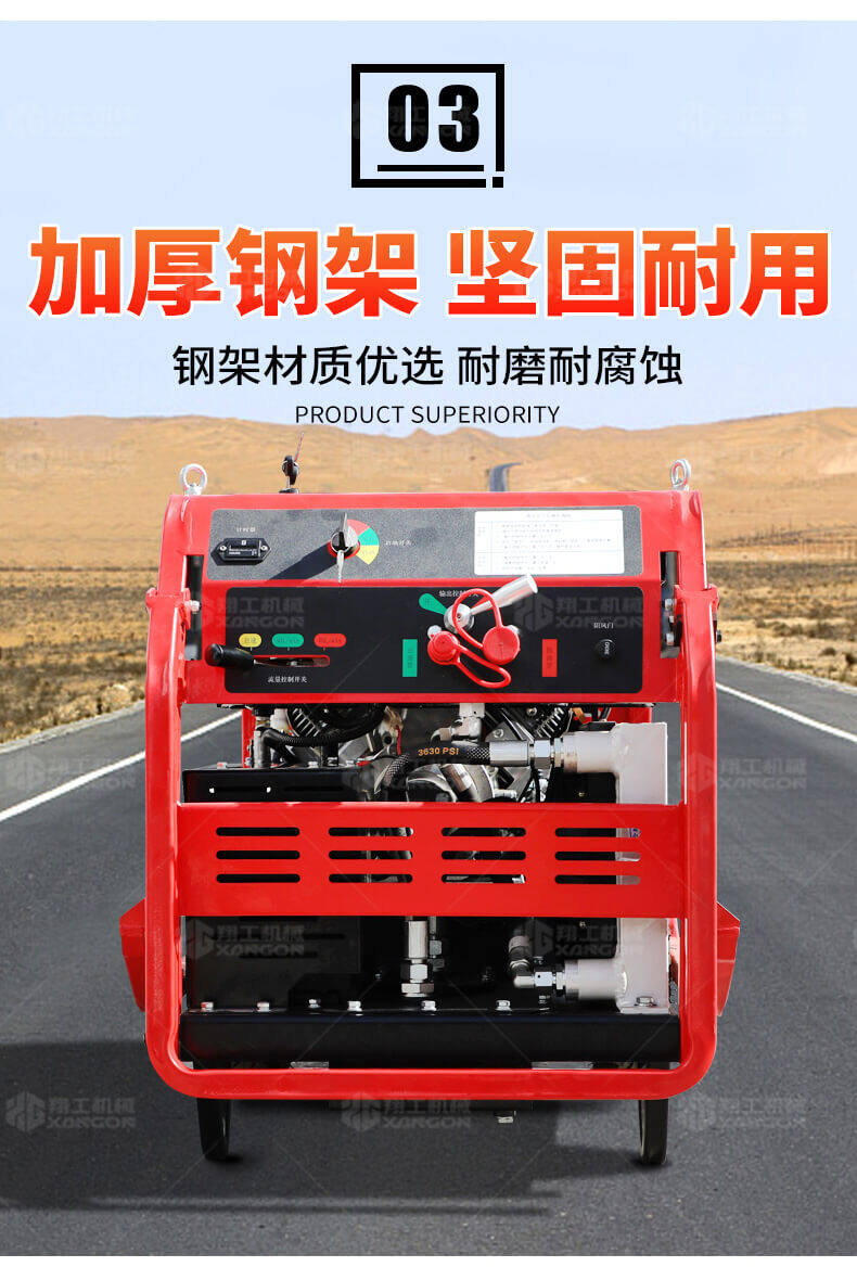 液壓動(dòng)力站采用先進(jìn)的技術(shù),可提供汽油或柴油風(fēng)冷式內(nèi)燃發(fā)動(dòng)機(jī),燃燒效率高,重量輕,堅(jiān)固耐用,使用壽命長,且不用擔(dān)心發(fā)動(dòng)機(jī)過載。