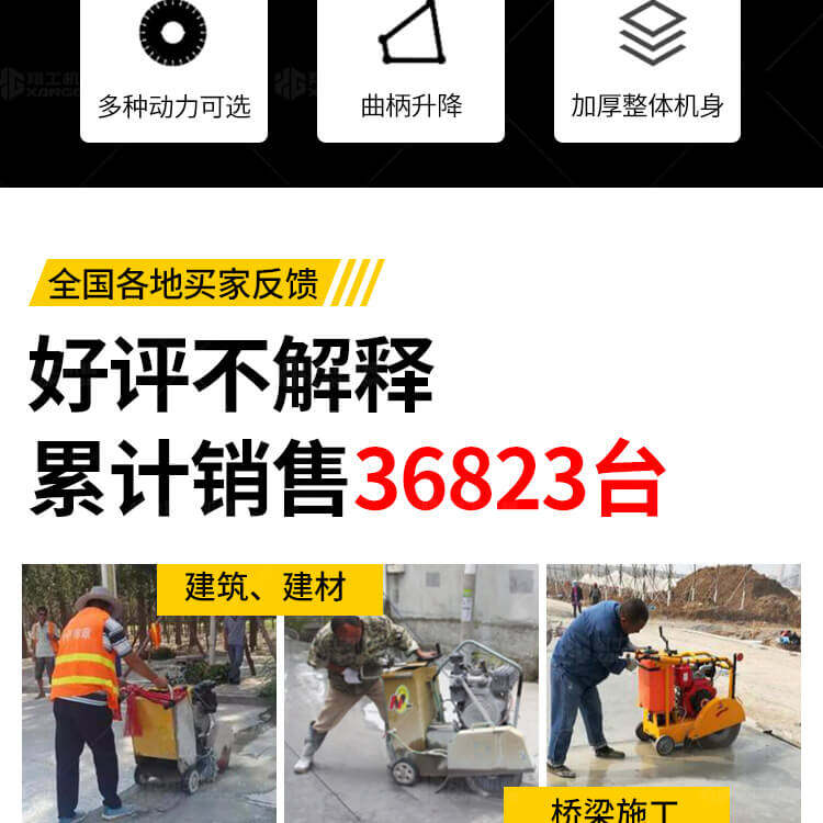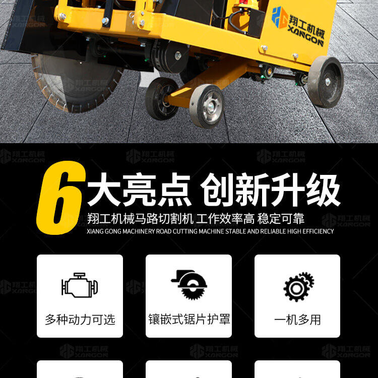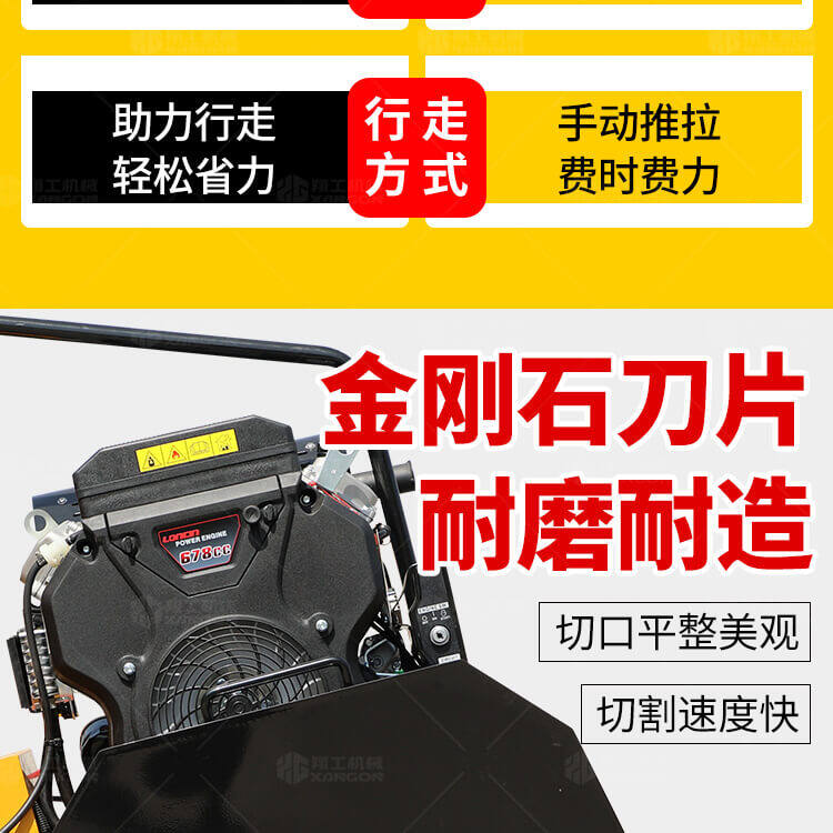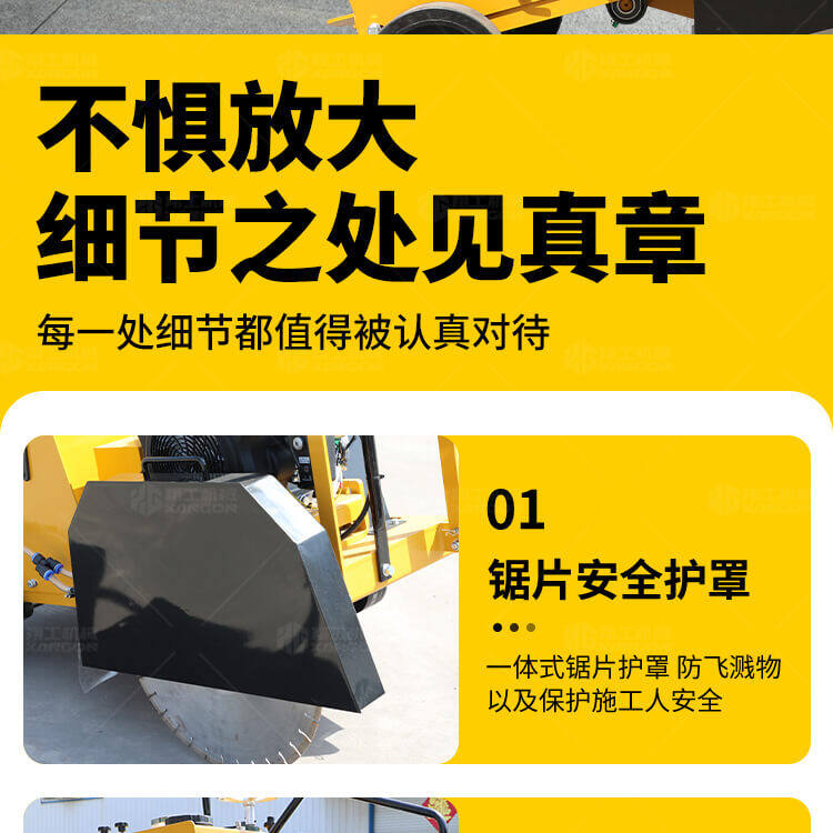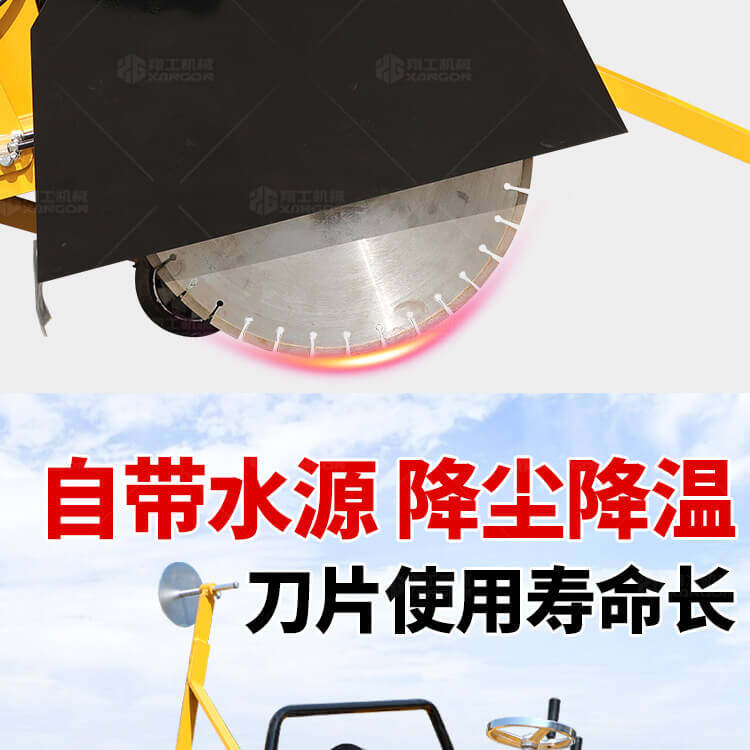 大鋸片大直經(jīng)馬路切割機自帶水源,降塵降溫,刀片使用壽命長。
