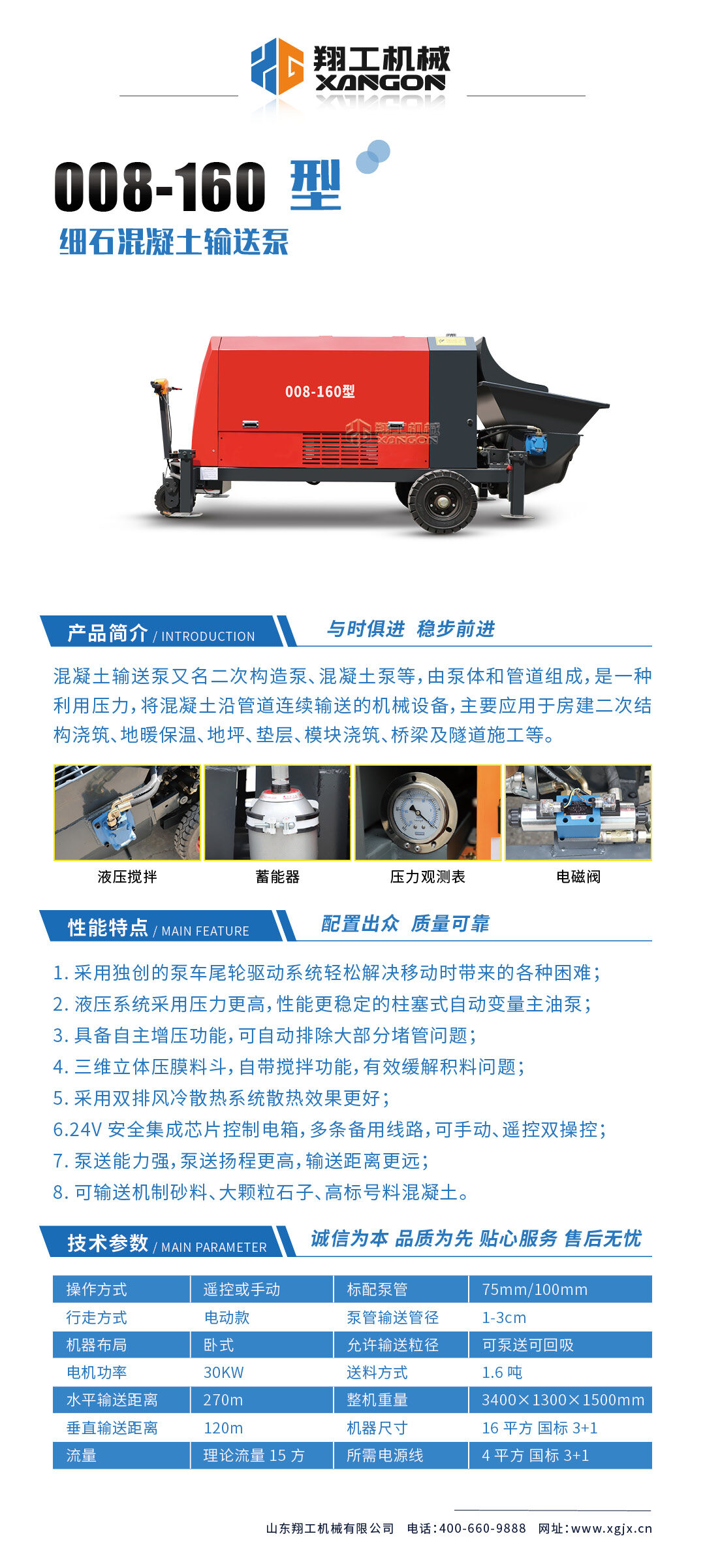 采用獨(dú)創(chuàng)的泵車尾輪驅(qū)動(dòng)系統(tǒng)輕松解決移動(dòng)時(shí)帶來(lái)的各種困難,采用雙排風(fēng)冷散熱系統(tǒng)散熱效果更好,液壓系統(tǒng)采用壓力更高,性能更穩(wěn)定的柱塞式自動(dòng)變量主油泵,采用先進(jìn)的三維立體壓模一體式自動(dòng)攪拌料斗可輸送機(jī)制砂,高標(biāo)號(hào)混凝土,有效緩解積料問(wèn)題。