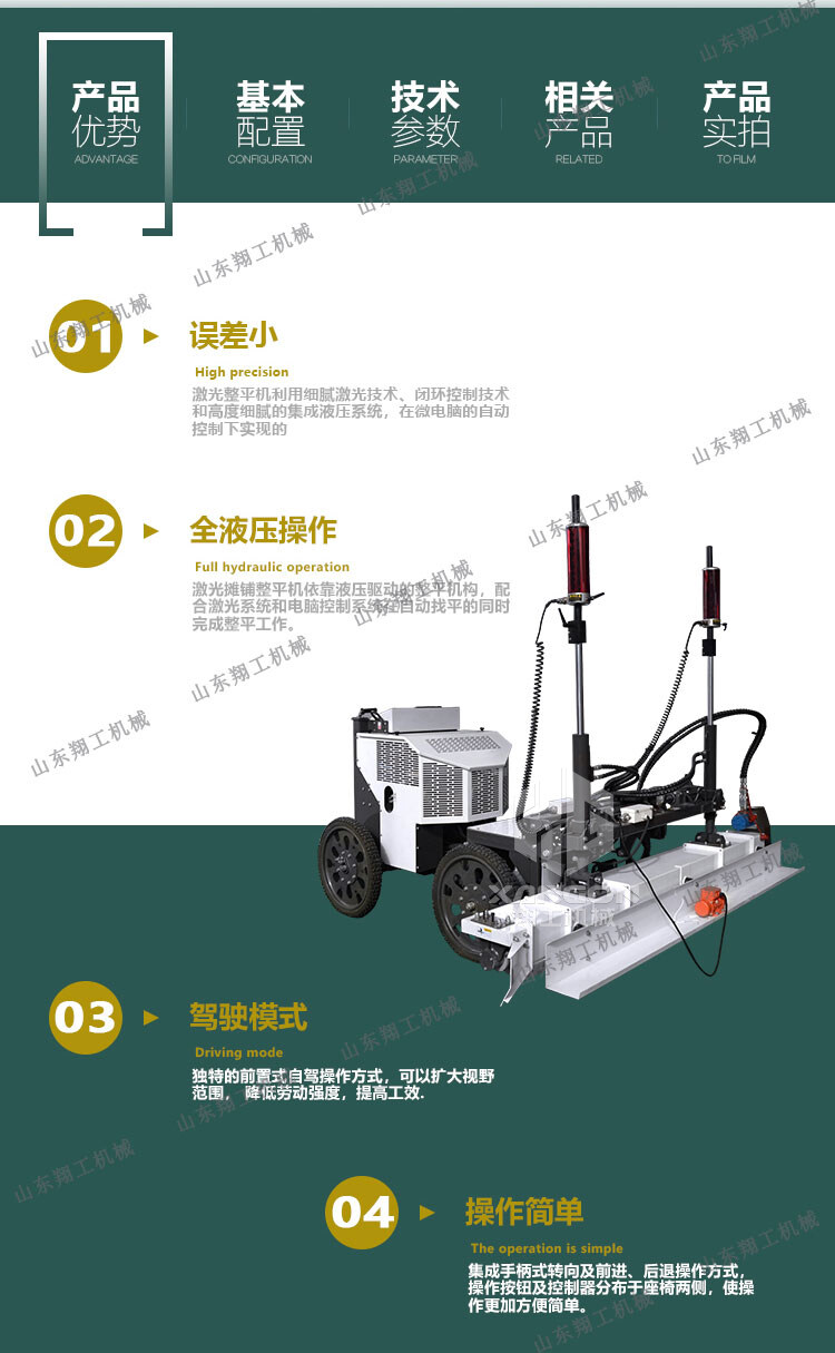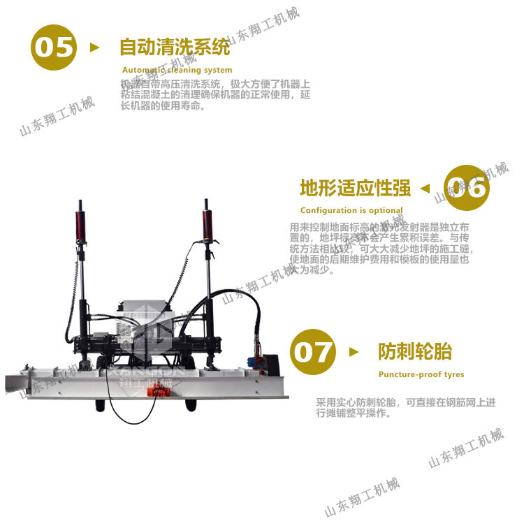 翔工機械精心研制開發(fā)的激光混凝土整平機利用先進(jìn)的激光發(fā)射接收系統(tǒng)形成的閉環(huán)回路控制整平板尺的工作,精度高,廣泛用于現(xiàn)代工業(yè)廠房、大型購物場所、貨倉及其它大面積混凝土地面施工。