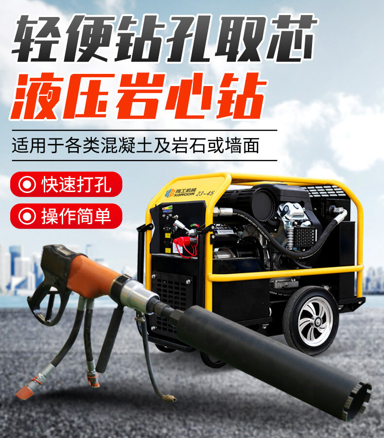 液壓巖心鉆是巖心鉆探設(shè)備的一種,它適用于水泥混凝土、鋼筋混凝土、瀝青混凝土、巖石上鉆孔或進(jìn)行巖芯取樣