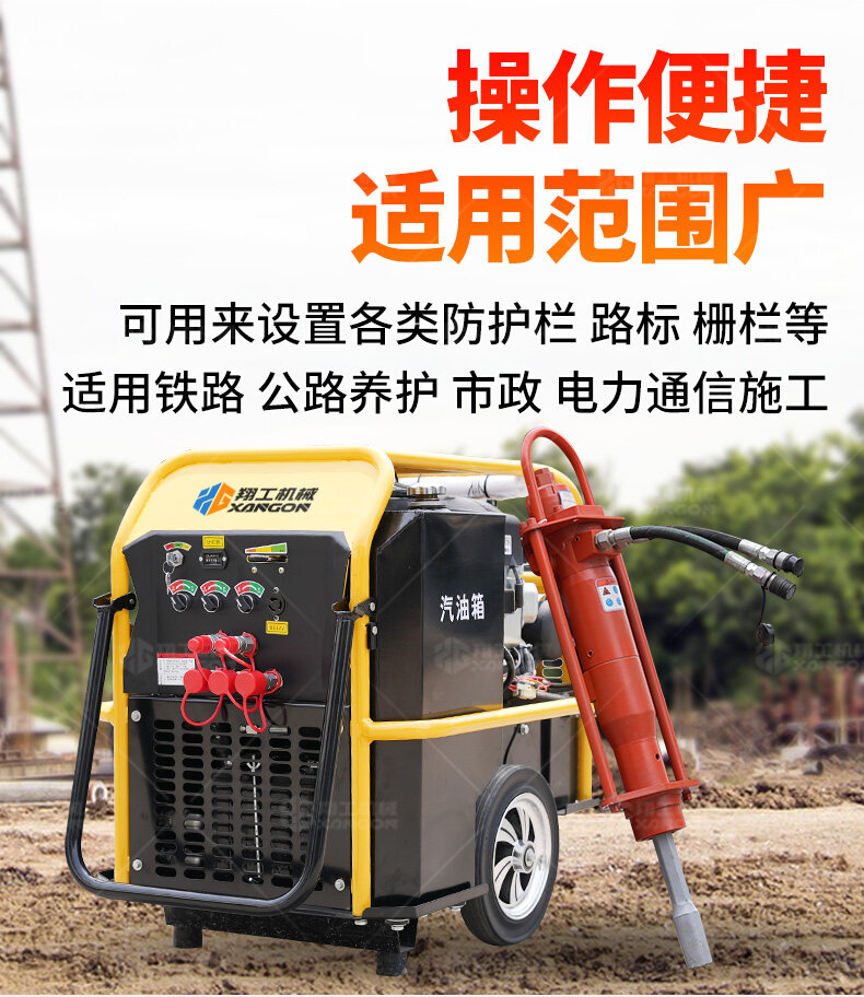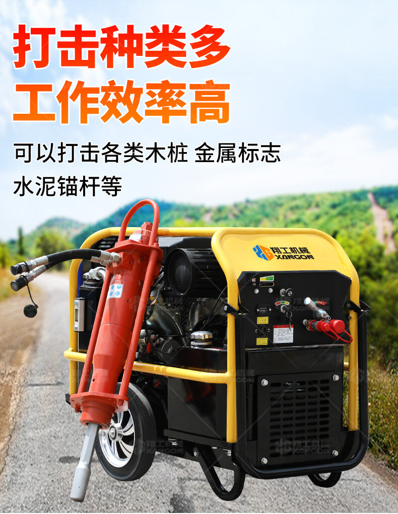 手持液壓打樁機+液壓動力站——高效靈活的打樁解決方案。采用液壓驅(qū)動,沖擊力強、振動小,適用于建筑地基、圍欄安裝、園林工程等場景。搭配液壓動力站,動力強勁,操作便捷,可長時間連續(xù)作業(yè)。體積小、重量輕,適合狹小空間施工,是工程打樁的理想工具。