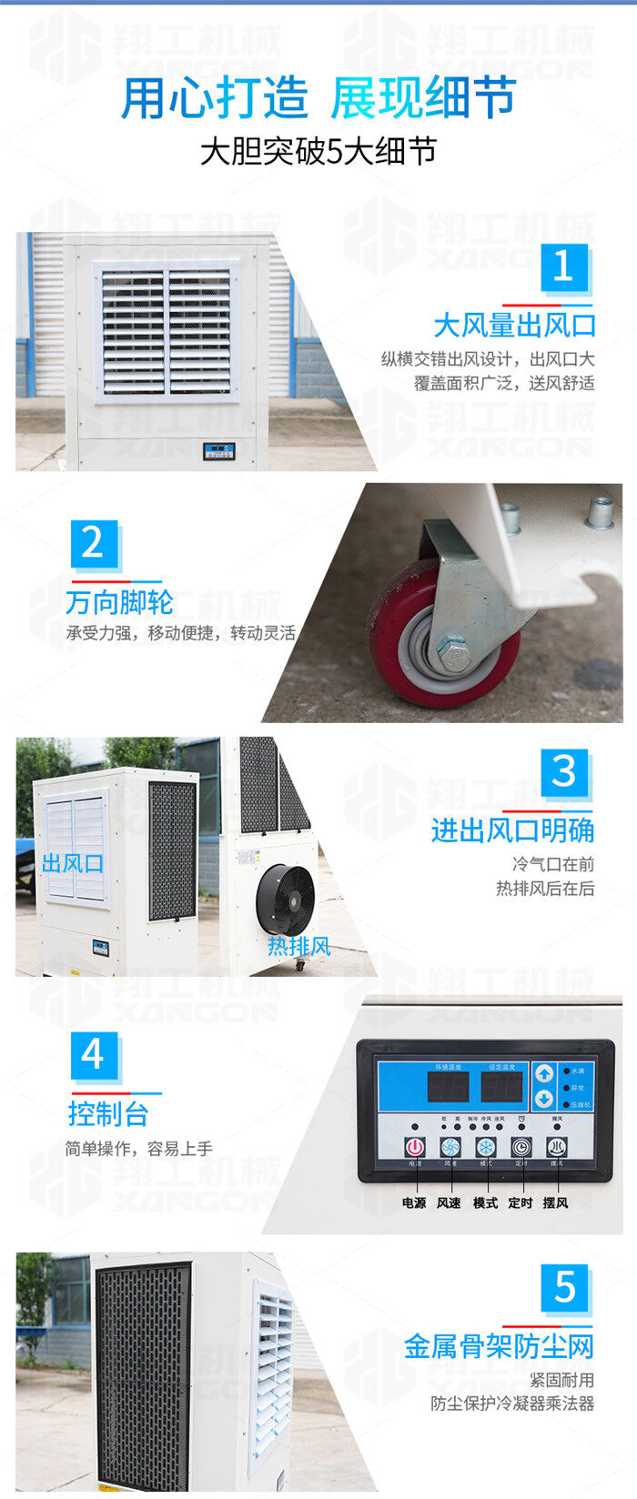 適應(yīng)各種大面積場(chǎng)所快速降溫,無(wú)外機(jī),無(wú)需專業(yè)安裝,即插即用 無(wú)需空調(diào)連接管。