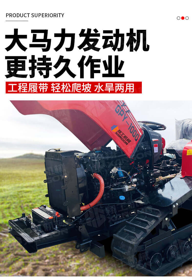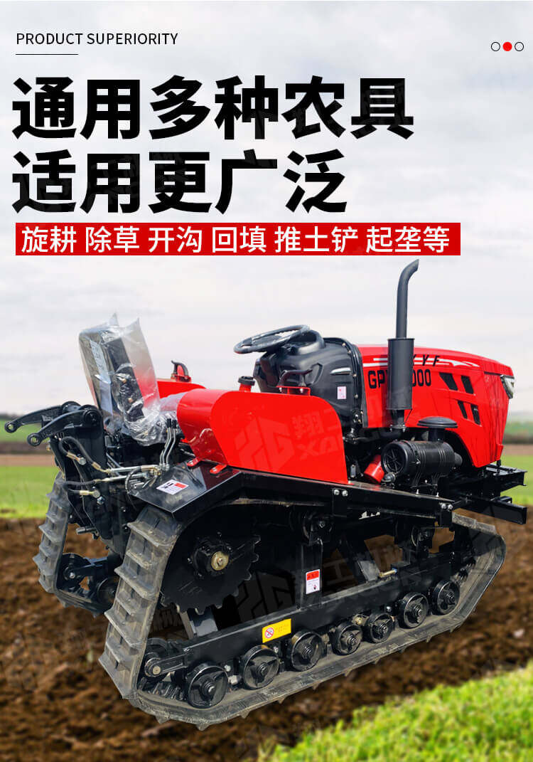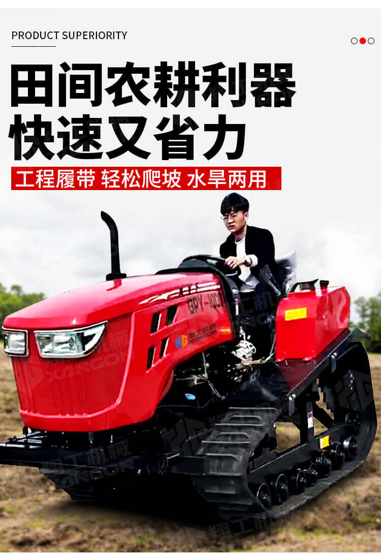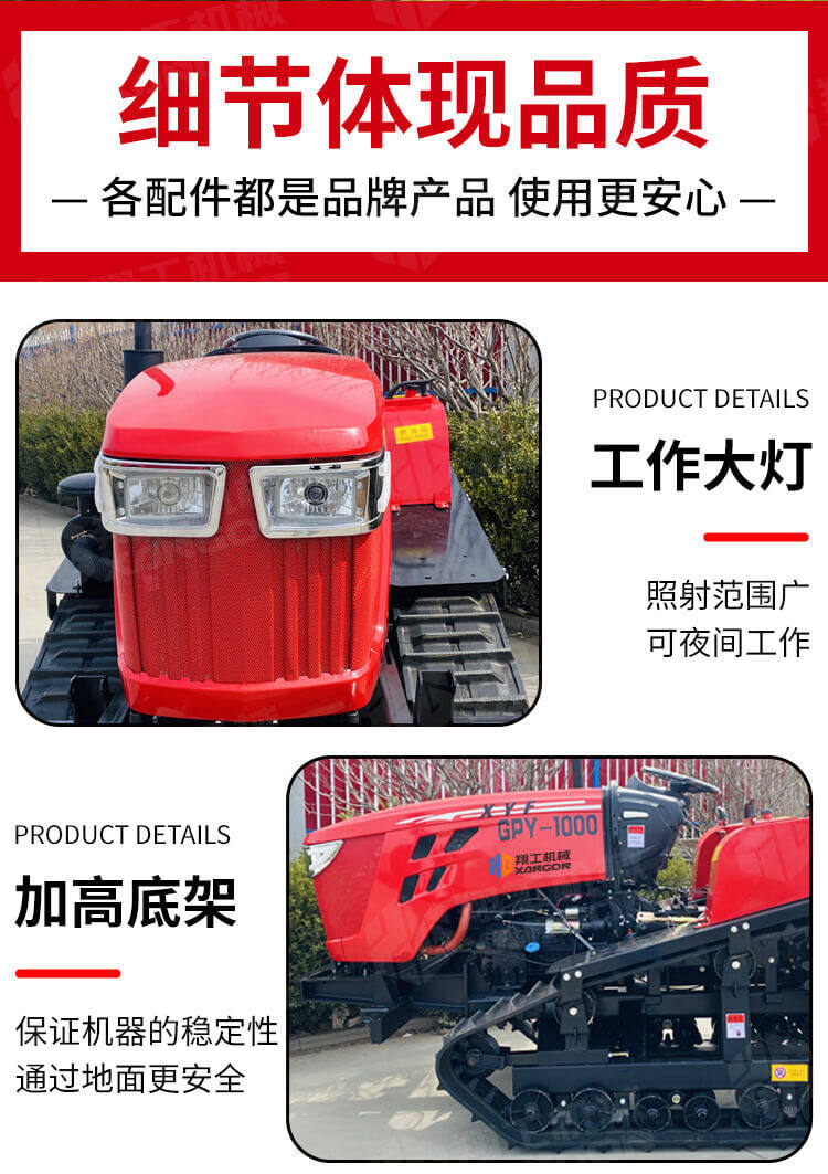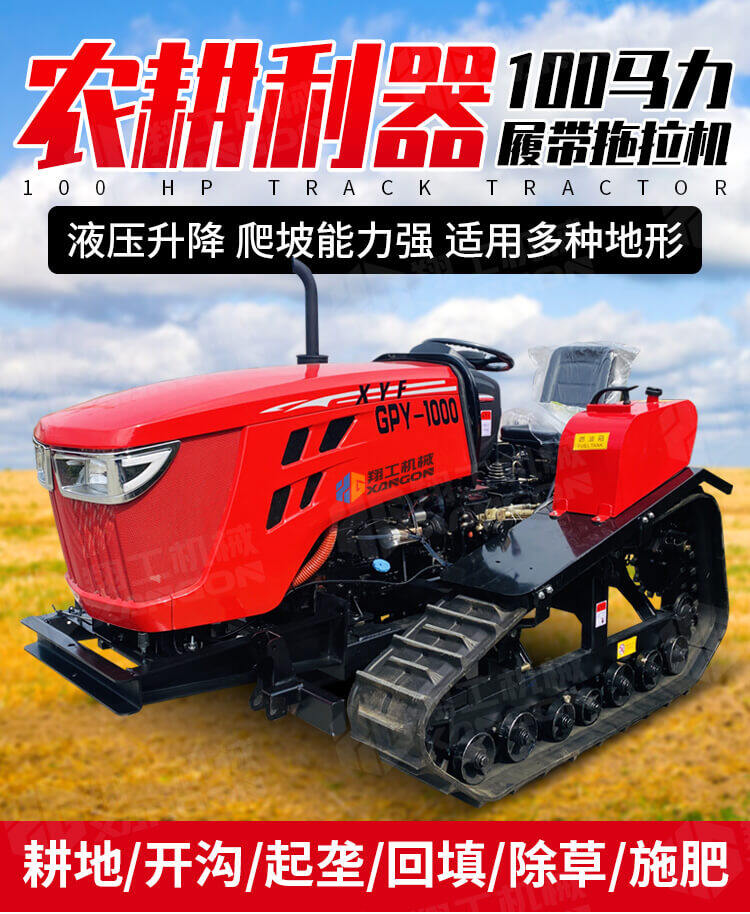 100馬力果園旋耕機液壓升降,爬坡能量強,專為復(fù)雜地形設(shè)計。橡膠履帶接地壓力小,附著力強,有效防止打滑,特別適用于水田、坡地及泥濘地塊。旋耕除草效果好,效率卓越,是規(guī)?;r(nóng)耕與高標(biāo)準(zhǔn)農(nóng)田建設(shè)的強勁動力。
