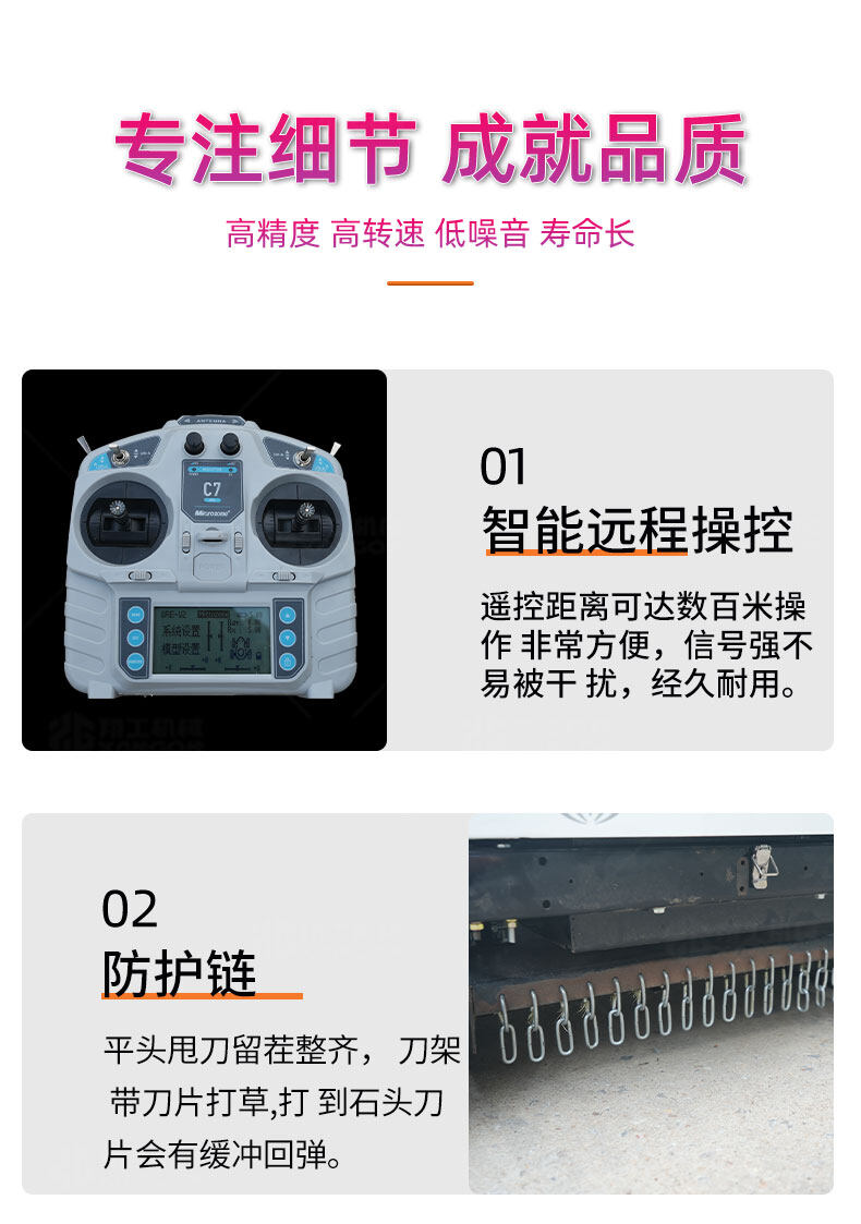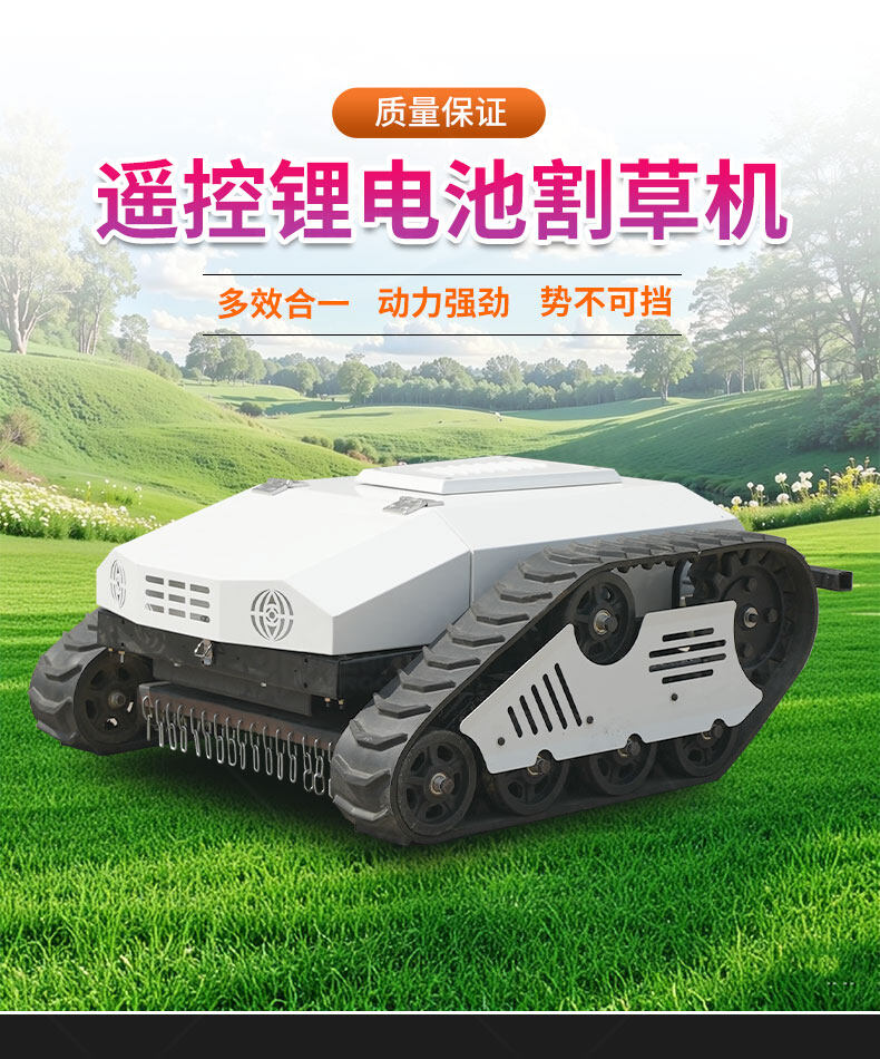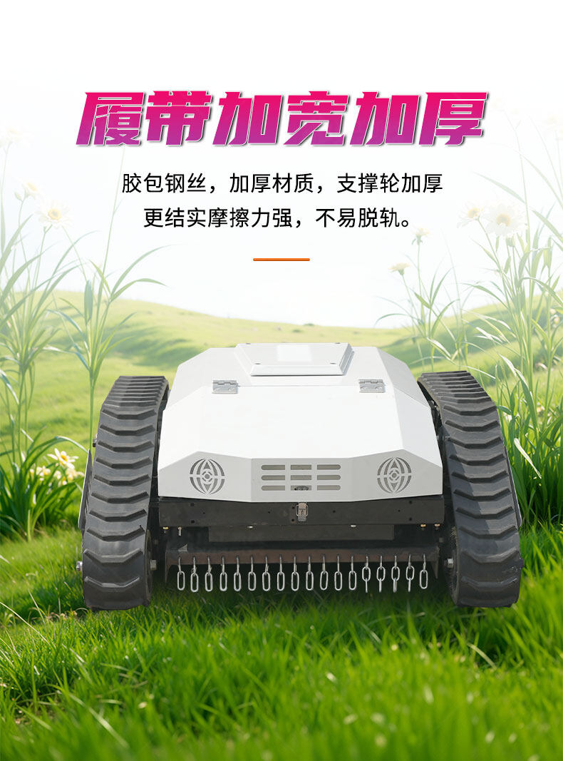 智能遙控履帶割草機采用鋰電池驅(qū)動,節(jié)能環(huán)保,續(xù)航持久;履帶式底盤設(shè)計,輕松應(yīng)對復(fù)雜地形,爬坡越障能力強。配備智能遙控系統(tǒng),操作簡單便捷,可遠距離精準控制。高效割草,低噪運行,適用于庭院、公園及專業(yè)草坪養(yǎng)護,是現(xiàn)代化園林管理的理想助手。