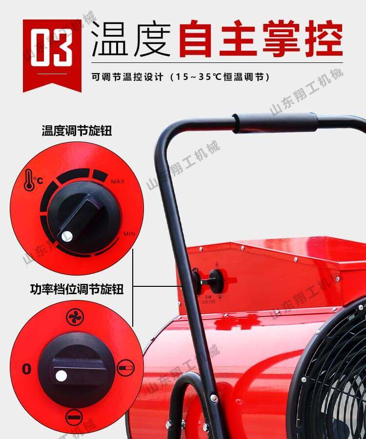 暖風(fēng)機(jī)優(yōu)點(diǎn): 1、純銅全封閉電機(jī) 2、防爆不銹管(不銹管發(fā)熱元件作熱源保證產(chǎn)品的可靠) 3、取暖溫度可自動(dòng)調(diào)節(jié)(調(diào)節(jié)功率) 電暖風(fēng)機(jī)是由通風(fēng)機(jī),電動(dòng)機(jī)及散熱器組合而成的聯(lián)合機(jī)組。適用于空氣允許再循環(huán)的各種類型車間,當(dāng)空氣中不含灰塵,易燃性的氣體時(shí),可作為循環(huán)空氣采暖之用。